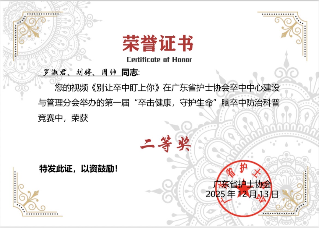 本次广东省护士协会主办的竞赛,不仅为全省医护人员搭建了卒中防治科普的交流平台,更传递了深刻的行业共识:科普不是专业知识的“降维输出”,而是用大众喜闻乐见的方式搭建健康桥梁。广东医科大学附属东莞第一医院的获奖,印证了“专业+创意”的科普模式的强大生命力——当医学严谨性遇上传播创新性,才能让卒中防治知识穿透圈层,走进千家万户,真正实现“尽早识别,立刻就医”的世界卒中日倡导。